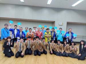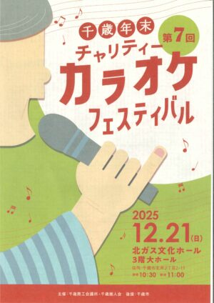 2025年12月21日(日)7回目となる千歳年末チャリティーカラオケフェスティバルに今年も千歳 工業クラブとして参加をしてきました。 今年は、千歳北陽高等学校の吹奏楽部と先生方とのコラボで参加、THE BOOMの「風になりたい」 を歌うことにしていて、たまたま、当クラブのキリンビール「晴れ風」のCMソングということも あり「晴れ風」のバナーやイメージ色の横断幕等で歌を盛り上げました。